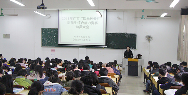 为加强医学生临床基础理论、基本知识、基本技能的培养,全面提高医学生综合素质和人才培养质量,1月24日上午,瑞康临床医学院在明秀校区东梯二教室召开2018年“医学校长杯”医学生综合能力竞赛动员大会。学院学生科王瑜主任、教务科汪国翔主任以及2014级辅导员、2013级优秀学生代表、2014级全体学生参加本次大会。会议由学生科王瑜主任主持。