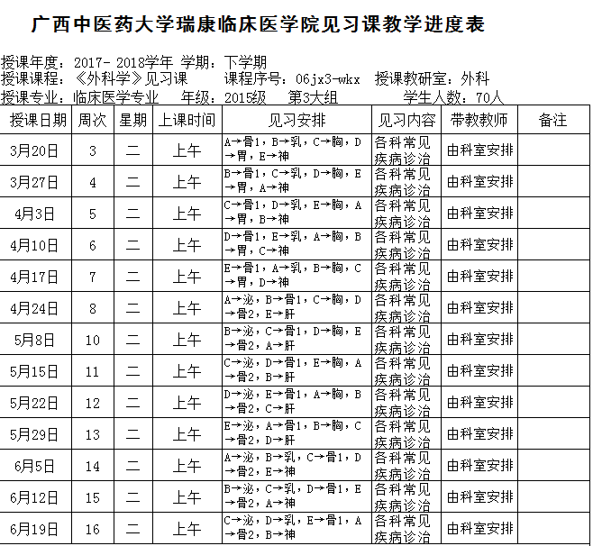 2017-2018下15级临床第3大组《外科学各论》见习进度表