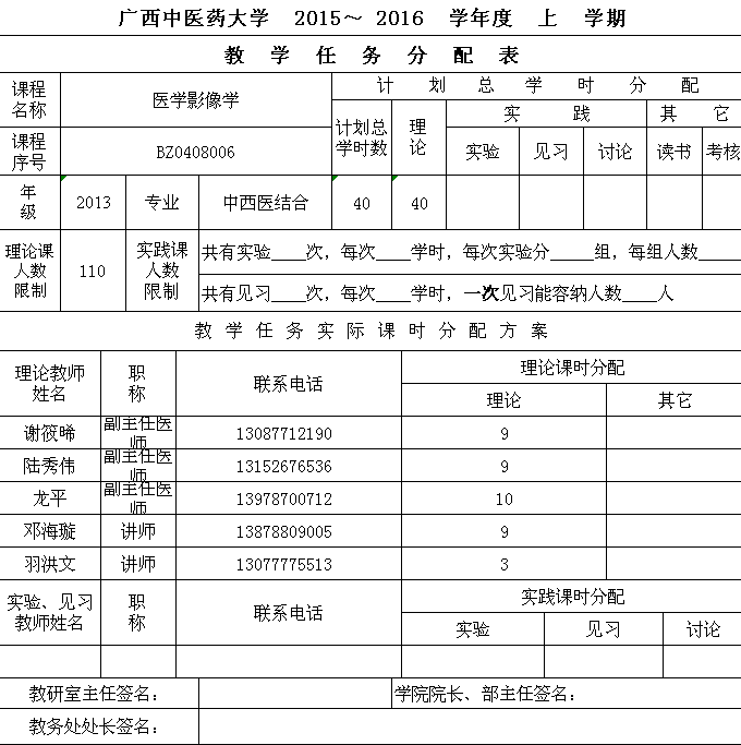 2015-2016上本科教学任务分配表(中西医临床)
