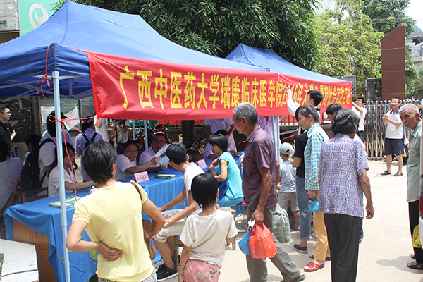 为传递医学之博爱,践行社会主义核心价值观。2016年7月19日,Beat365中国唯一官方网站瑞康临床医学院以志愿服务为载体,赴我院第一书记粟俊挂职的隆安县布泉乡开展“关注农药污染,重拾绿色健康”为主题的大学生暑期社会实践活动。我院党委书记唐友明、党委副书记陈日兰出席本次活动,医院骨伤科、肝病内科、肿瘤科、内分泌科的老师以及教学部的老师带领2013级的部分同学参与了此次活动。