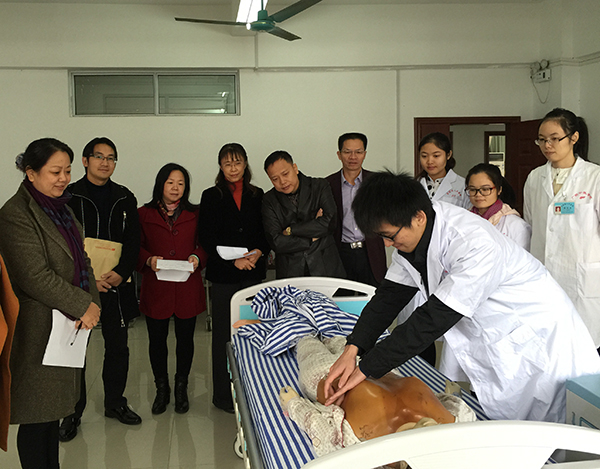 2015年12月8日至9日,Beat365中国唯一官方网站副校长吴琪俊带队前往贵港市人民医院、玉林市中医院、玉林市人民医院、玉林市骨科医院、北海市中医院开展非直属附院教学水平评估暨实习中期查专家巡回教学指导工作。我院党委书记唐友明、教务学生党总支副书记秦明芳、临床教学指导专家杨靖、潘汉升、欧阳国林以及学校教务处、教师发展中心、实习管理科、其他学院教学负责人等一行16人作为教学水平评估专家组成员参加此次检查评估工作。本次教学水平评估和检查主要模拟中医专业认证方法从教学地位、师资队伍、教育教学改革、教学条件、临床教学查房、临床能力考核等方面开展,以师生座谈、学生访谈、问卷调查等形式进行。