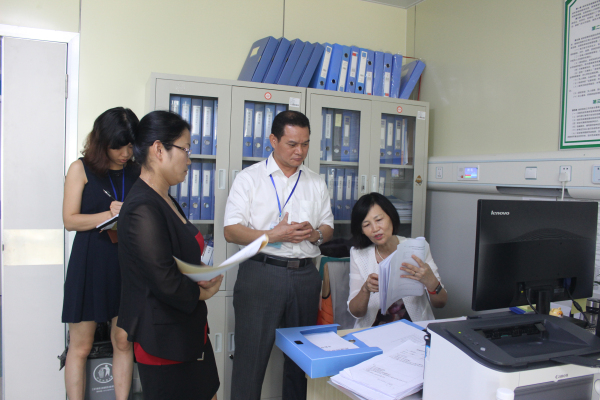 随后,学校领导专家分成三个组分别进行了检查,尤剑鹏书记、教务处唐梅文处长到内科门诊B区教学门诊、呼吸内科、神经内科一区走访教学活动,观看教学查房、教学病例讨论及临床技能考核。教务处副处长刘武到我院北湖南棉社区卫生服务中心了解实习生实习基本情况,听取中心主任廖康兴作社区实习教学工作汇报,并开展教师和学生座谈会。刘燕平教授则在医院A座10楼教学区检查内科、外科教研室的形成性评价与反馈、教案、教学大纲、教学设计、考试结果分析与反馈等教学文件。