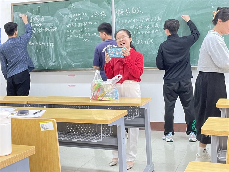 赛后,辅导员苏莉莉对活动进行了总结,她对同学们的积极参与活动表现表示了肯定,同时也指出了同学们的方剂学基础存在不够扎实的情况,希望同学们一定要制定好学习计划,巩固方剂知识。