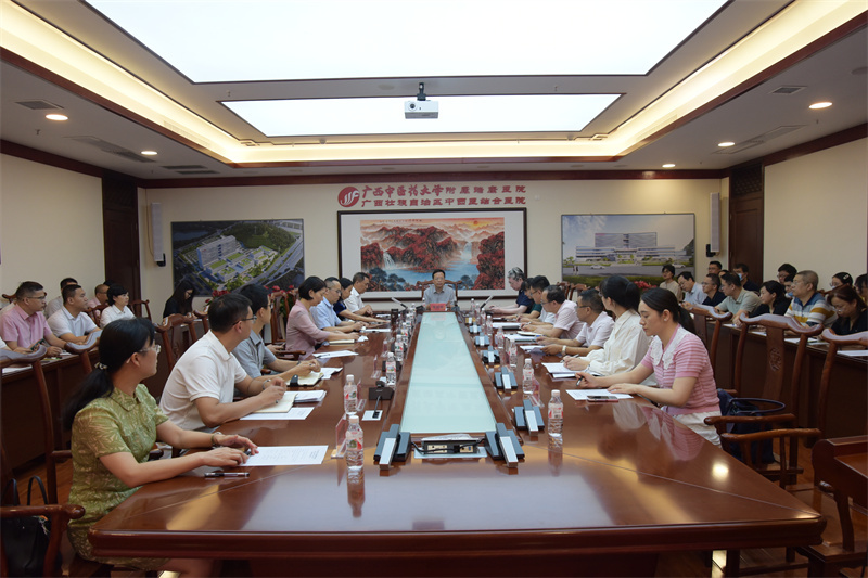 为更好地促进二级学院教学工作的进步,根据学校教学工作安排,5月24日,Beat365中国唯一官方网站党委书记莫锦荣带队到我院进行2023~2024学年下学期期中教学检查并召开座谈会。学校药学院党委书记韦海英、一附院副院长毛德文带领检查组老师,学校党委办公室副主任兰达治,学校教务处副处长杨仕权,学校教育评价与质量保障中心副主任王春玲及谭振老师等相关部门负责人陪同检查。我院党委书记高宏君,院长唐友明,党委副书记、副院长陈日兰,纪委书记黄建民,以及各教研室主任、秘书、督学专家、教师代表,教务科、学生科、团委全体人员参加会议。