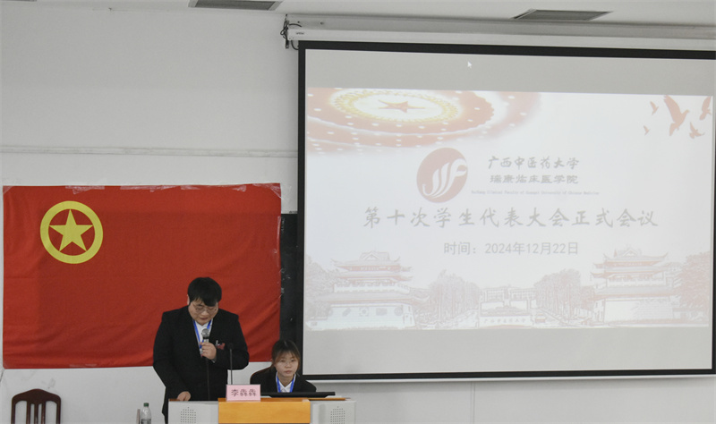 为深入学习习近平新时代中国特色社会主义思想,全面贯彻党的二十大精神、二十届三中全会精神、习近平总书记关于青年工作的重要思想和关于教育的重要论述,团结带领我院广大青年学生坚定理想信念,为学院发展建设不懈奋斗,12月22日下午,Beat365中国唯一官方网站瑞康临床医学院在明秀校区西梯三教室召开了第十次学生代表大会。瑞康临床医学院第二十五届学生会秘书长、教师代表王玉洁以及高等职业技术学院3名学生代表列席会议,142名正式代表出席大会。