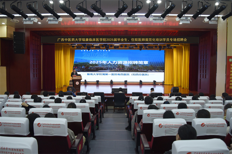 唐红珍在致辞中详细介绍瑞康医院丰富的优秀毕业生资源,并带领学生了解用人单位的发展脉络,为毕业生提供切实可行的就业引导。此次招聘会,用人单位提供超80个就业岗位,覆盖临床医学、医学影像、医学检验技术等多个专业领域,为毕业生的职业选择提供了多元方向。