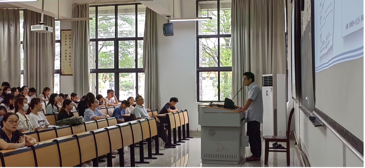 药学综合中心主任韦建华作实验室安全注意事项培训