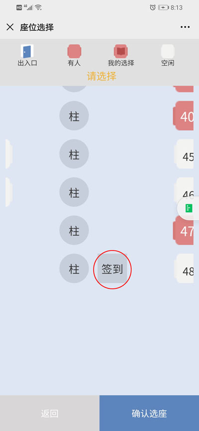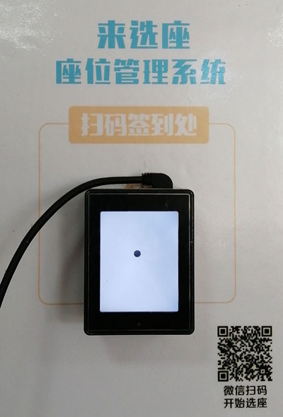 选座时同时找一下【签到】的位置,在这些位置安装有签到扫码器。