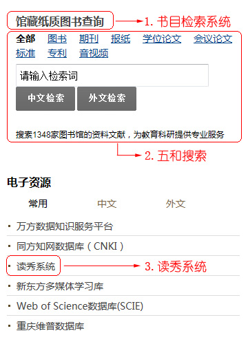 (1)馆藏查询:检索图书馆馆藏纸质图书。