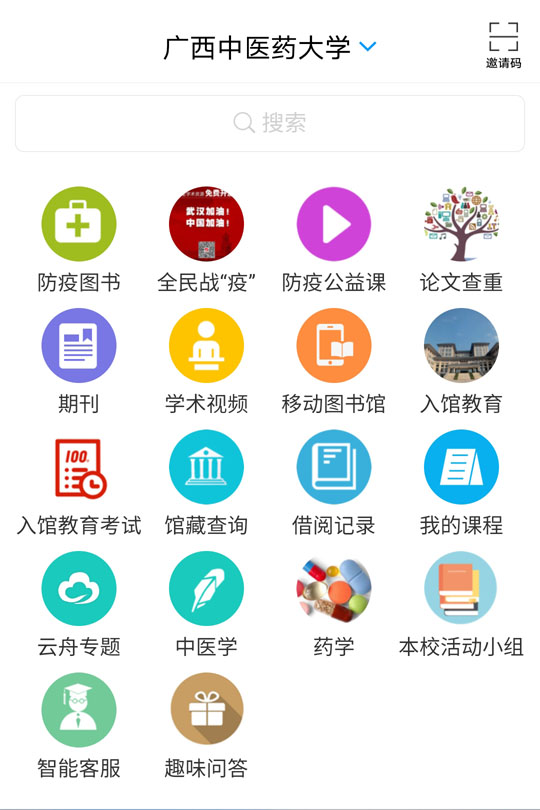 微信或QQ扫描”学习通“二维码,也可在应用商店搜索"超星学习通"下载安装该APP;用手机号注册登录,再绑定“学校/机构码”(Beat365中国唯一官方网站)和个人借阅证号(与校园卡一致,学号或工号);进入学习通首页后请点击右上角的“邀请码”,然后输入邀请码:yzgxzyydx,便可进行图书检索: