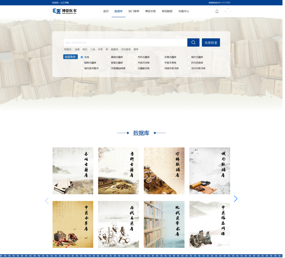 12.民国中医书库:收录了民国时期中医典籍200余本以及相关期刊文献,民国时期的医学书籍记录了当时较新的医学理论与医学实践,反映了医学发展史上的重要时期,具有重要的科研和临床价值。