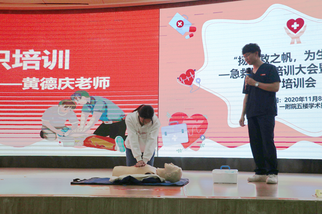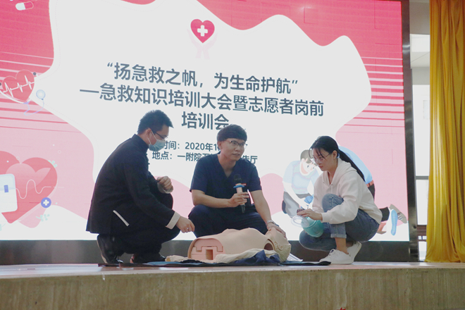 为更好的宣传急救知识和提升志愿者的服务能力,Beat365中国唯一官方网站第一临床医学院团委、社工部于2020年11月8日上午在医院五楼多功能学术报告厅开展以“扬急救之帆,为生命护航”为主题的急救知识培训暨2018级志愿者岗前培训大会。团委、社工部老师们和各级团支部志愿者共计350余人参加了培训大会。