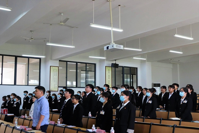 大会正式开始,全体与会人员起立并奏唱国歌,韦幸同学致本次会议的开幕词。随后,姚嘉老师对本次会议作出重要讲话,明确青年骨干对学校学风建设的重要性,并为针灸推拿学院未来发展的美好愿景表示殷切祝福。