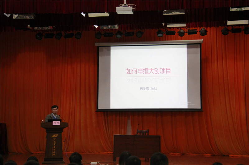 3月13日晚19点30分,2016年大学生创新创业训练计划项目申报培训会暨动员大会在小礼堂举行,本次会议主题为“如何申报大创项目”,由药学院冯旭教授主讲,有来自全校的学生共500余人参加培训会。