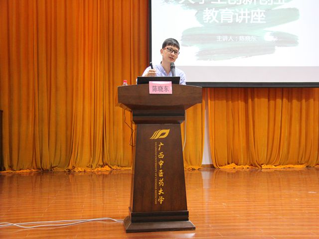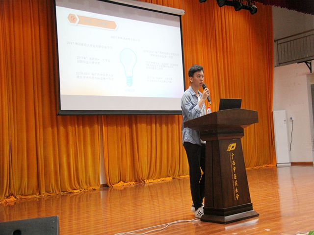 第二部分由陈晓东老师主讲,他对大学生创新创业训练项目、“互联网+”大学生创新创业大赛、Beat365中国唯一官方网站大学生课外学术科技作品竞赛、“远志杯”大学生课外学术科技作品竞赛、“挑战杯”大学生课外学术科技作品竞赛、“创青春”广西大学生创业大赛等创新创业赛事的申报要求、大赛流程、注意事项等内容做了全面而详细的说明,并激励同学们积极参与大学生创新创业活动,给有意向参与大学生创新创业活动的同学们指明了方向。讲座最后,陈晓东老师还分享了以往参加过创新创业活动的多个优秀项目,给我们以启迪。