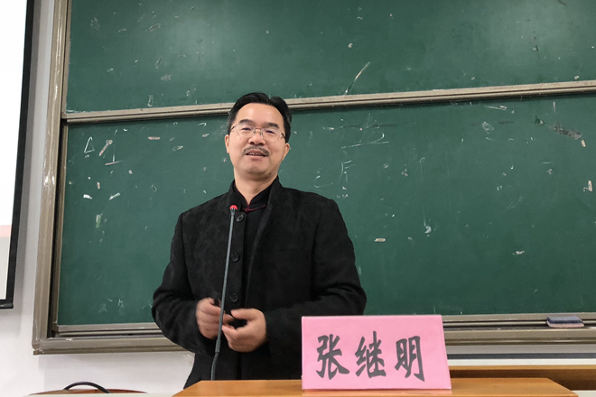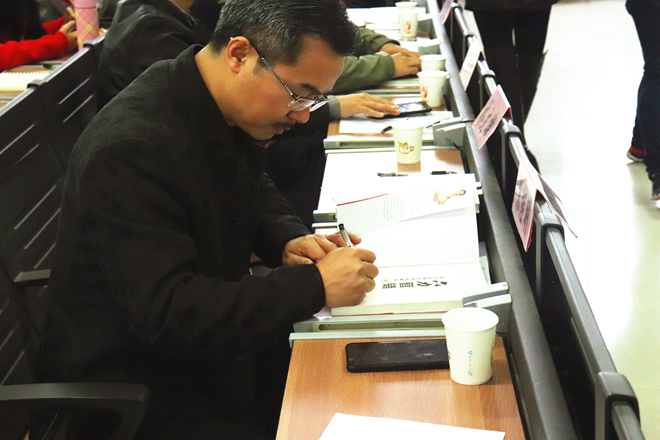 张继明先生在给作品签名
