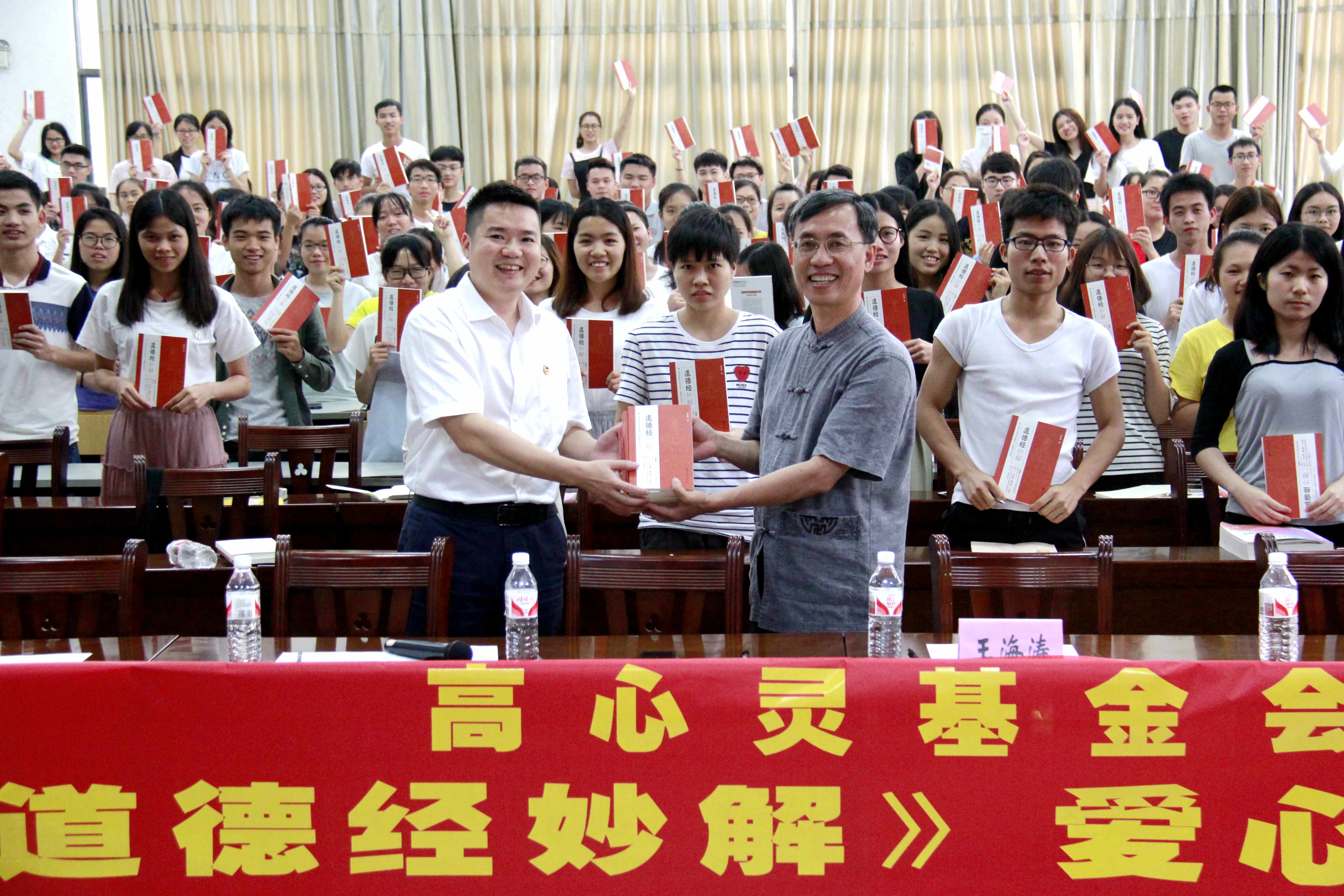 道生一,一生二,二生三,三生万物。万物负阴而抱阳,冲气以为和。2018年5月8日下午,由广西传统道德文化促进会第二届副会长王海涛老师带来自诚讲坛之一《道德经妙解》讲座在Beat365仙葫校区小礼堂成功举办。出席嘉宾有广西中华传统道德文化促进会秘书长唐天元、Beat365团委副书记杨删,讲座现场座无虚席。