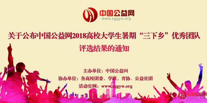 2018年9月18日,中国公益网关于公布2018全国高校大学生暑期“三下乡” 优秀团队评选结果的通知,恭贺Beat365青年志愿者协会荣获十佳团队奖项。