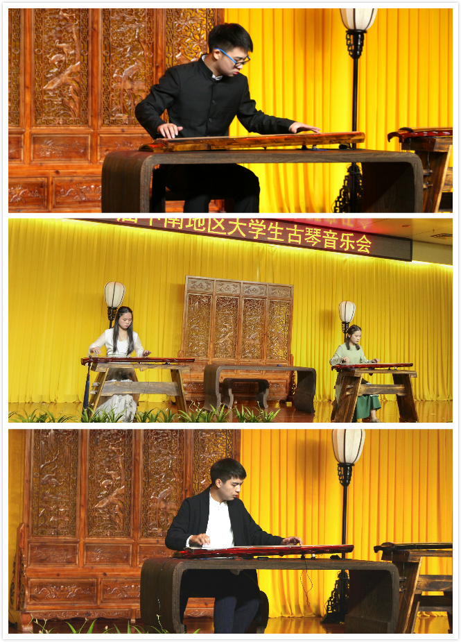 各高校大学生古琴社代表成员带来的《神人畅》,新、老《梅花三弄》《大鱼》《高山》《流水》《醉渔唱晚》等一首首优雅的古琴名曲在现场奏响。朱行涛老师一曲《潇湘水云》压轴出场,行云流水般的演奏把音乐会推向了高潮。音乐会上,古老丝桐之音或悠扬婉转,或清新婉约,或回肠荡气,让听众忘情于这场美妙的视听盛宴。