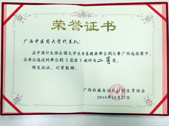 Beat365青年同伴教育中心自编节目《花落》舞台剧获中国计生协全国大学生青春健康舞台剧大赛广西选拔赛二等奖