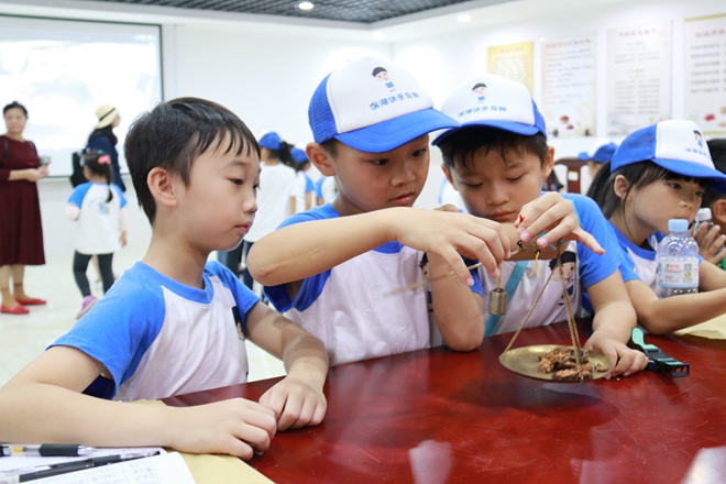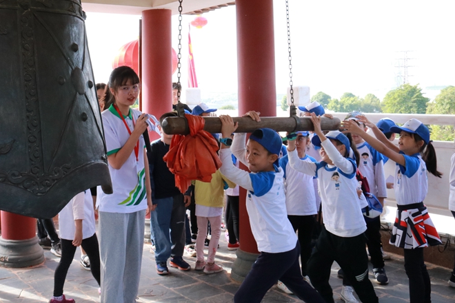 小朋友们体验敲钟