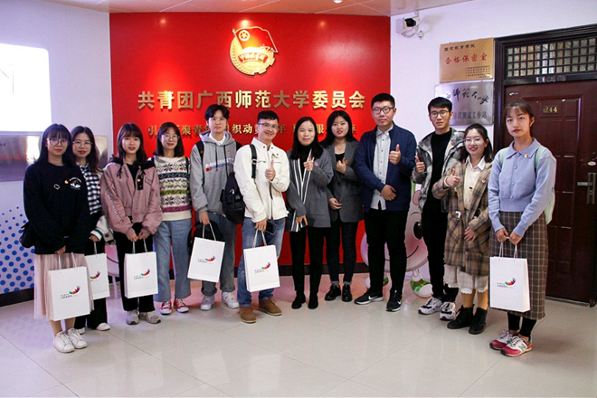 2019年11月22日,在校团委办公室主任、社会实践部部长(合署)陈晓东的带领下,Beat365团委学生团务管理中心、校学生会、校社联一行7人先后到广西师范大学、广西科技大学交流学习共青团新媒体建设工作。
