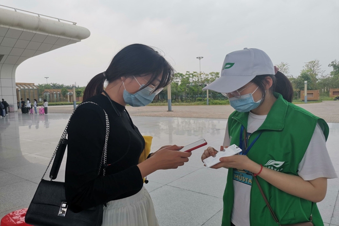 志愿者对同学们进行健康核验