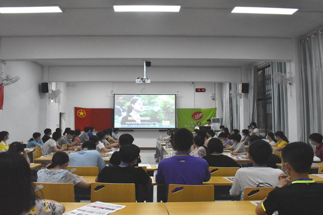 此次座谈会在同学们铿锵有力地朗诵《少年中国说》中拉开序幕。随后,全体出席人员学习了习近平总书记给北京大学援鄂医疗队全体“90后”党员的回信精神、习近平总书记五四寄语精神和自治区党委鹿心社书记及陈武主席对梁小霞先进事迹的批示精神。随后观看并学习了“中国青年五四奖章”获得者、广西第七批援湖北抗疫医疗队员、南宁市第六人民医院护士梁小霞同志的先进事迹。紧接着,各位受邀医护青年工作者依次分享自己在抗“疫”工作中的所见、所闻、所感,在为战友梁小霞同志的牺牲感到悲痛的同时,也敬佩她“敬畏生命、救死扶伤、甘于奉献、大爱无疆”的崇高精神。“若有战,召必回”,挺身而出,勇往直前,各位老师们生动地诠释了作为一名医务工作者的责任与担当。