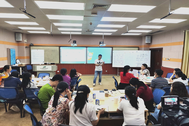 本次培训中,主要以分小组的参与式方式进行授课,上课的过程中课堂氛围活跃,参与培训的老师们能积极配合。课上老师们,认真分析案例,并结合自己身边的一些案例进行分享,让培训有很好的效果。同时也安排了一些游戏环节,使老师与老师之间,老师与讲师之间有很好的互动。参与本次培训活动的还有志愿者们,志愿者尽心尽责,在前期志愿者们做好充足的准备工作,活动中期与后期也能尽职尽责认真完成每一项任务,为本次培训活动提供了良好的培训环境,同时也提高了志愿者们的综合素质。