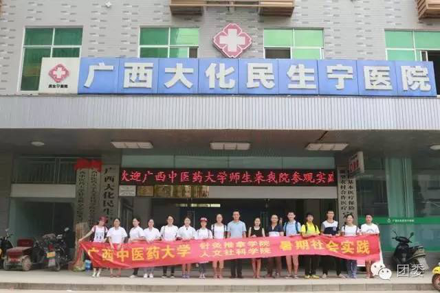 7月16日上午,在各位老师的带领下我们来到了大化县民生宁医院开展实践活动,活动还是依照在罗城县的分工,两个学院分别负责相关活动。给群众进行义诊和调查活动过程中,同学们还通过与群众的闲谈的方式去了解他们的身体状况并给出保健意见,群众都对同学们的义诊服务给予支持和肯定。此次活动还得到大化县民生宁医院的大力支持,实践团队还参观了民生宁医院关于中医针灸推拿科室,了解了基层医疗机构的建设情况。
