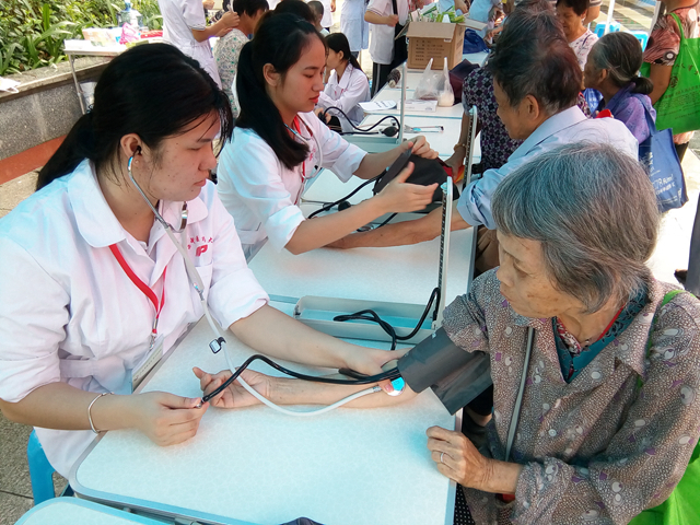 “健康使者志愿服务队”志愿者在测量血压
