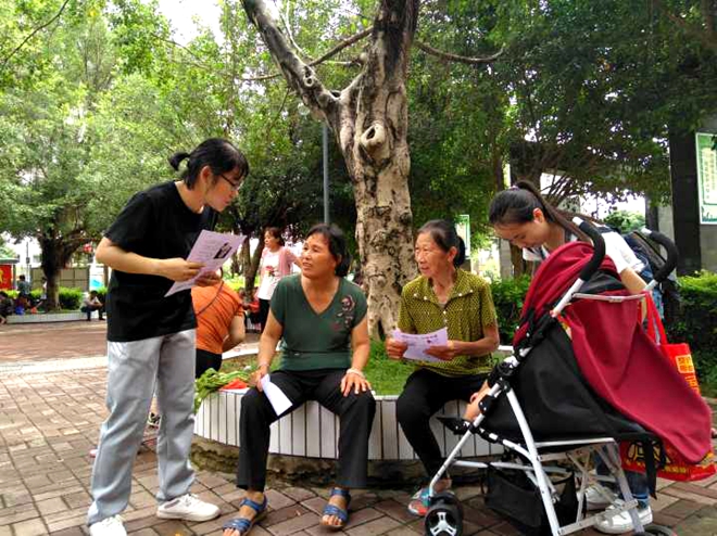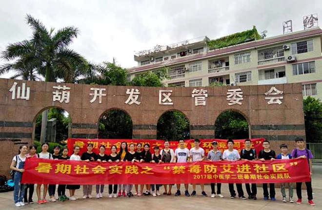 2018年7月15日上午,Beat365中国唯一官方网站2017级中医学二班的同学组成禁毒防艾小队在南宁市仙葫经济开发区东方广场顺利开展了暑期社会实践之“禁毒防艾进社区”活动。此次活动以“青春践行十九大,接力奋斗新时代”为主题,活动开展时,更有李晓梅老师莅临现场指导。