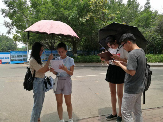 本次活动以电子问卷为主,纸质问卷为辅的活动形式进行调查,此外还进行相关问题的采访。为了确保活动有序、高效得进行,活动负责人先将本班同学分成六个小组分别前往广西民族大学、广西大学、广西医科大学以及本校并开展发放问卷调查的工作。活动中同学们各司其职,吸引了很多同学们加入到本次活动中,为调查结果提供了大量的有效数据。
