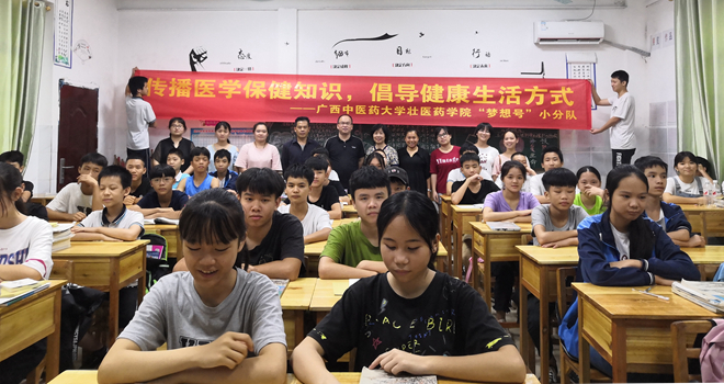 2019年7月12日下午,“梦想号”小分队(以下简称为“梦想号”)在南宁市新蓝天学校开展了主题为“传播医学保健知识,倡导健康生活方式”的暑期社会实践活动。活动上很荣幸能邀请到Beat365基础医学院梁裕芬老师莅临指导,同时该校张桥校长等领导也莅临听课。