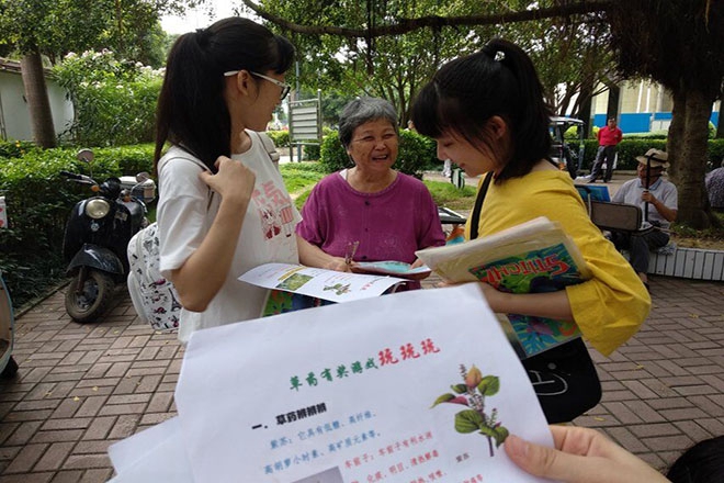 调查过程中,“健康热线”战队成员抵达东方广场后首先进行简单的问卷调查和口头描述,简单了解市民对肿瘤的认知程度。继而,战队成员开始向市民进行肿瘤知识宣讲,介绍近年来肿瘤、癌症的发展趋势,癌症发生的一些可能危险信号,常见的8种肿瘤,以及如何健康生活,预防肿瘤等相关知识。进而,结合中医药大学的教学特点,普及相关中草药知识,引导人们健康生活,合理养生,预防癌症。接下来,“健康热线”战队成员再次通过问卷调查的方式了解经过宣讲后市民对肿瘤的认识程度。随后,“健康热线”战队成员进行太极拳展示,与市民一起探讨太极拳的精妙之处,让市民了解中医药大学的大学生特色健身活动,帮助他们培养更广泛的兴趣。最后,“健康热线”战队成员进行合影留念。