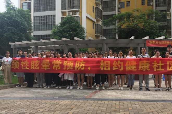 2019年7月13日上午,针灸推拿学院医馨医义队于南宁市西乡塘区明秀南社区开展了“颈性眩晕病种的临床调研、普及宣讲以及义诊活动”暑期社会实践活动,院团委蓝晶晶老师参加本次活动并进行指导。