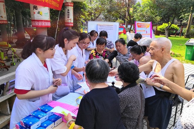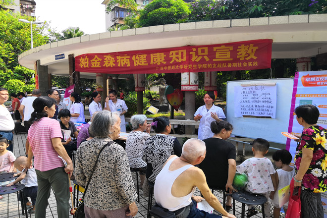 2019年08月10日早上,2018级研究生学院帕友战队小分队在广西南宁青秀区新竹社区开展了“帕金森病知识宣教”及问卷调查实践活动。本次活动的主要宣传对象是中老年社区居民,通过小讲课和有奖问答的形式宣传帕金森病的发病年龄及发病原因、早期症状,规范治疗等以达到早发现、早诊断、早治疗帕金森病,从而更好地改善患者的生活质量。调查问卷了解到人们对帕金森病相关知识的知晓度。同时还给居民免费血压及宣传健康的生活方式及帕金森病后的康复锻炼。
