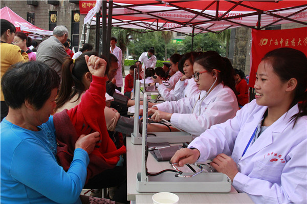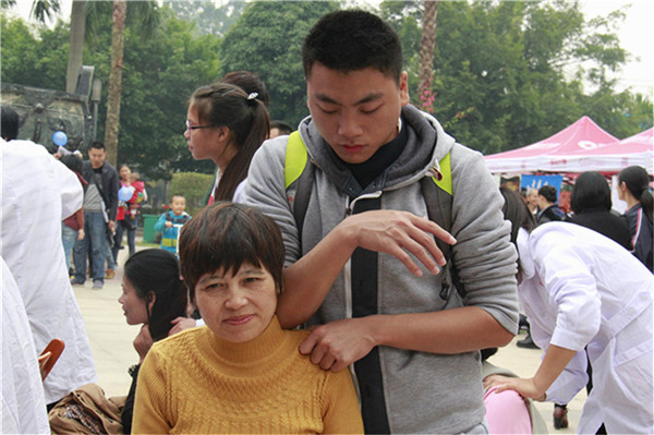为发扬“医者仁心”的精神,践行社会主义核心价值观,2015年11月28日上午,Beat365志愿服务队前往天池山庄广场开展志愿服务活动。本次活动由校团委组织,手法医学协会、青年志愿者协会、大学生红十字会、针灸协会共同协作。