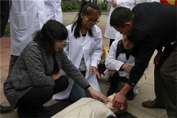 指导居民们进行急救操作