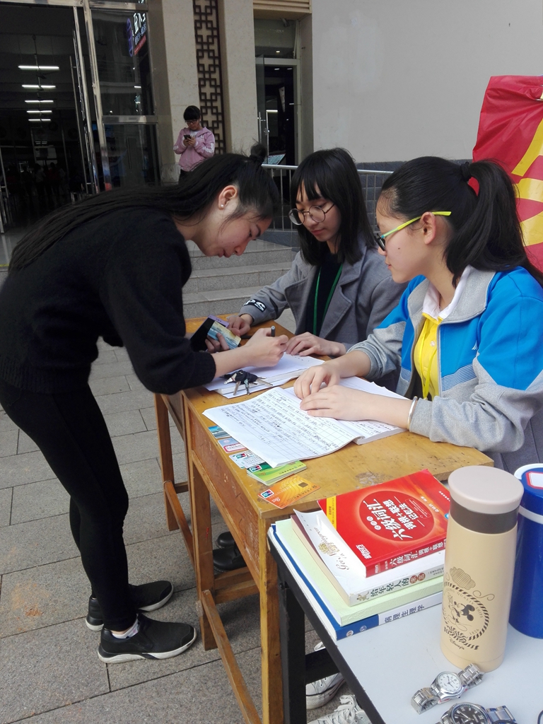 不少的同学都在这里找到了丢失的物品,也有心地善良的同学拿着失物前来登记。面对有些同学的疑问,志愿者们也耐心地解答疑问。过程中虽然有很多失物被认领回去了,但由于摆摊时间有限,还是有一些的失物没有能被失主认领。青协继续通过QQ群、空间、易班等网络渠道发布更新有关的失物信息,方便老师和同学们寻找他们丢失的物品。