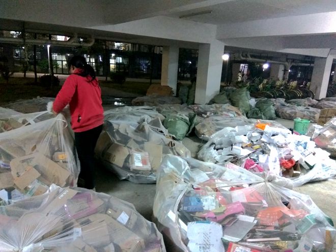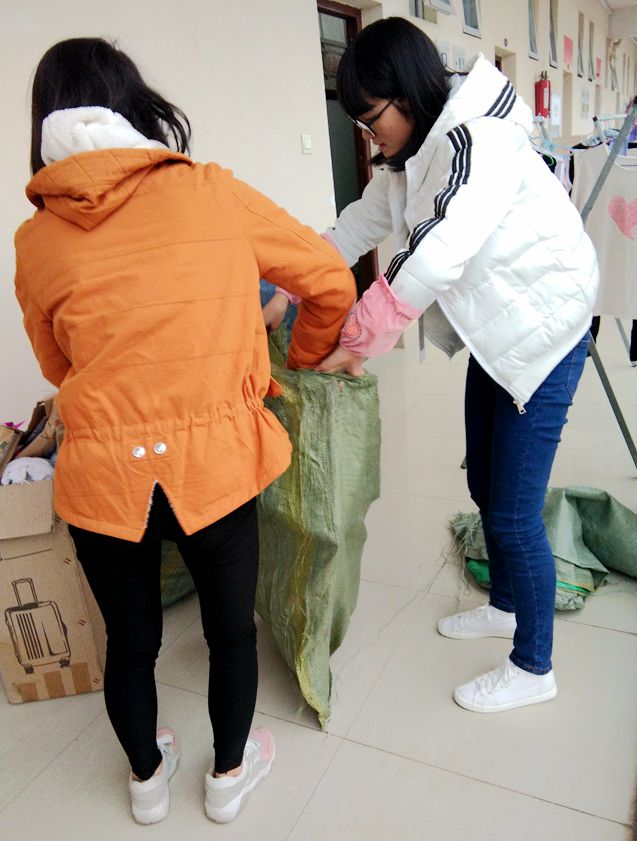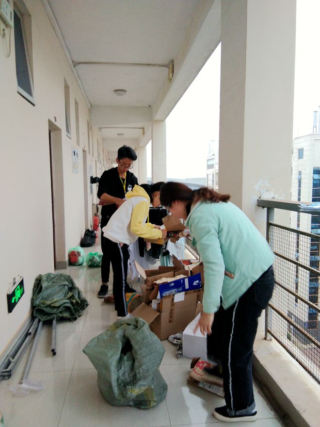 下午17:30,志愿者们拿好麻袋向各个宿舍出发,礼貌地敲每一扇蓝爱宿舍门,询问宿舍成员是否有废品可以回收;遇到没有人在的宿舍,志愿者们贴心地将事先抄好的便贴贴在门口,提醒蓝爱宿舍成员已经进行本月的废品回收。夜幕降临,在校园中依然看到志愿者们忙碌的身影,一部分志愿者依然在宿舍楼进行废品回收,另一部分志愿者将废品进行分类。虽然废品分类很繁琐,但志愿者们不怕苦,不怕累,充满活力,一直坚持到活动最后一刻。虽然活动在志愿者们的大合影的快门声中落下帷幕,但这却是一个创建爱心校园的开始。