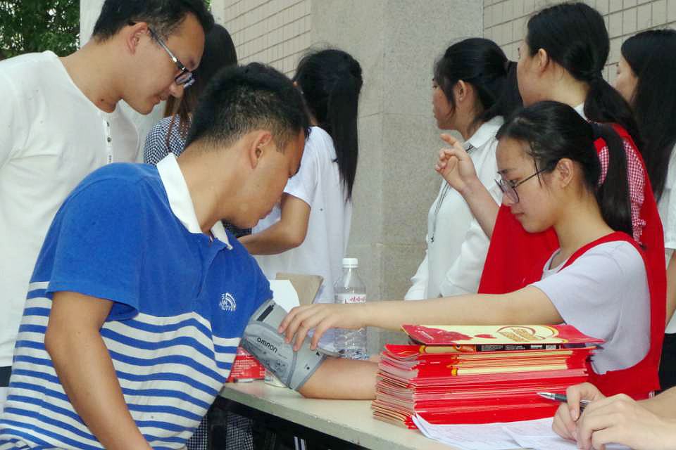 活动开始前,许多同学前来排队和咨询。在志愿者的指导下,同学们有序进行献血前准备,配合工作人员量血压,和医生初步确认健康状态达标后,进行验血,相关指标合格后再献血。活动井井有条地进行着,现场还有外国朋友前来了解情况,并参与到无偿献血活动中。志愿者为无偿献血活动参与者分发糖水、饼干、纪念品等的周到服务,令人倍感温暖。