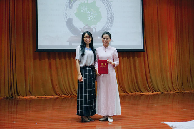 最后,王春花书记为罗惠娟老师颁发聘书,聘请罗惠娟老师为“淑女学堂”和“君子书院”的茶艺课程指导老师,老师与同学合影留念。