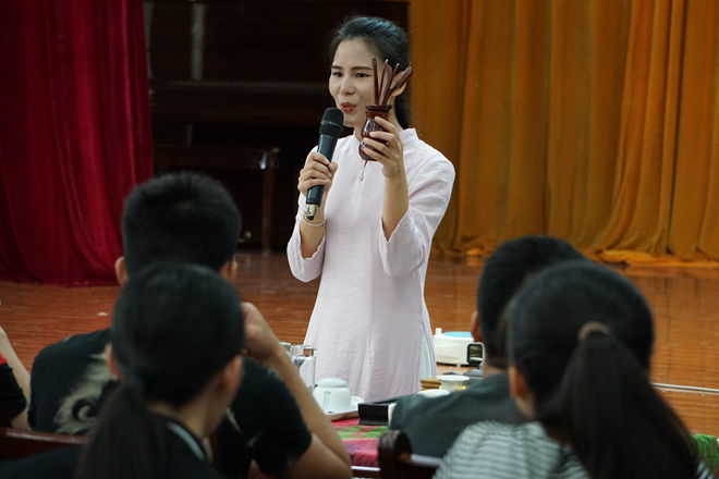 课堂上,罗惠娟老师介绍了茶的起源、种类、各种茶具的用途、沏泡手法等,让大家初步感受到了茶文化的魅力。