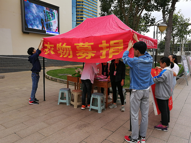 为了帮助生活困难的孩子们改善生活条件、树立起战胜困难、勇敢面对生活的勇气,让他们感受社会主义大家庭的温暖,12月2日至5日,Beat365青年志愿者协会协同广西民族教育发展基金会、广西日行一善爱心基金会在Beat365五合食堂门口开展了以“衣份爱心,衣份温暖”为主题的衣物募捐活动。