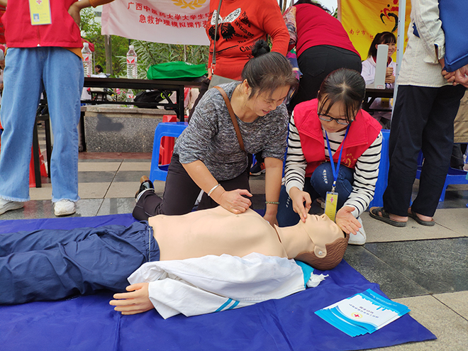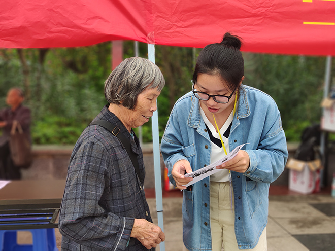 本次义诊所含项目有测量血压、针刺、艾灸,推拿和刮痧,志愿者们还对居民讲解和宣传与禁毒、急救有关的知识。义诊期间,志愿者们细心地询问居民的情况,以便更好的为居民进行针刺和艾灸。志愿者认真并热心地为大家讲解和展示心肺复苏术,观看完志愿者的演示后,居民跃跃欲试,并在志愿者的细心帮助下,体验到了别样的乐趣,居民对志愿者们的工作给予了一致的好评,而别具一格的手语表演更为此次的义诊活动增添了色彩。