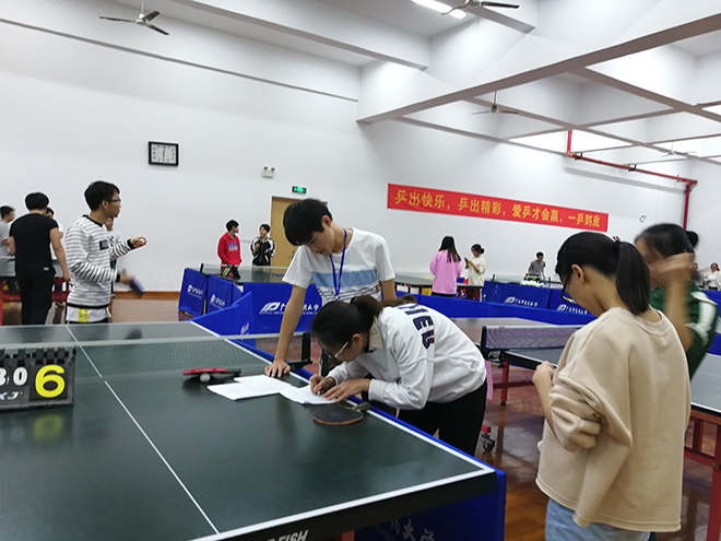 本次比赛不仅激发了同学们对乒乓球的兴趣,为乒乓球爱好者提供了一个相互交流、切磋球技的机会,同时加强了同学们之间的交流,展现了参赛选手的积极向上、朝气蓬勃的精神面貌。