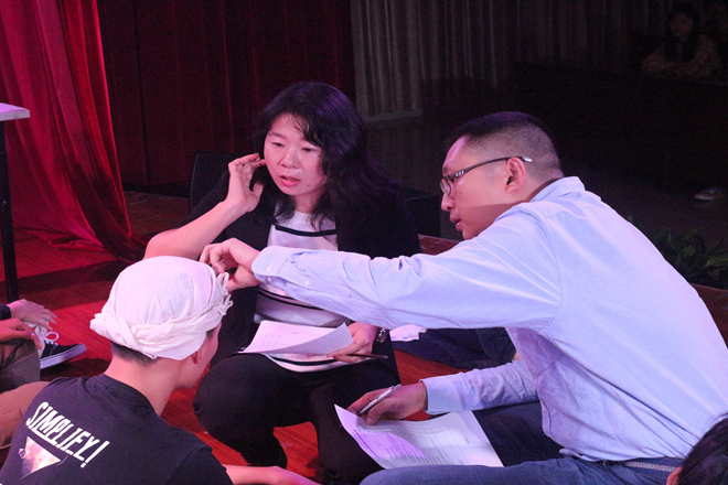 团体赛在独活乐队开场表演后拉开了序幕,首先进行的是情景模拟赛,大赛准备了不同的场景,同一个场景的两支队伍同台PK。模拟场景完成后老师上台查看个队伍的急救情况,并给出分数。为了缓解比赛紧张的氛围,支持人组织观众进行了抢答,理论答题比赛在抢答环节结束后展开。