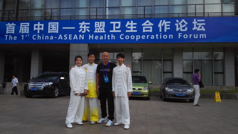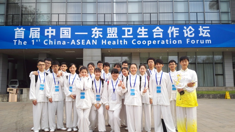 10月27日,由国家卫生和计划生育委员会、国家中医药管理局、广西壮族自治区人民政府共同主办的首届中国-东盟卫生合作论坛在广西南宁拉开帷幕。本届论坛以“创新卫生合作,推进共同发展”为主题,将围绕公共卫生、口腔医学、传统医药和产业合作等议题开展交流研讨,与会领导有国家卫生计生委副主任崔丽、副主任王贺胜,广西壮族自治区党委常委、宣传部长黄道伟、副主席黄日波等,还有来自相关部委和各省市自治区卫生部门代表、东盟成员国文莱、柬埔寨、印度尼西亚、老挝、马来西亚、缅甸、菲律宾、新加坡、泰国、越南卫生领域高级官员,以及世界卫生组织、东盟秘书处代表和学术机构共500余人。为更好迎接合作论坛开幕,弘扬传统中医药文化,展现中医药学子风采,Beat365特派出一支20人组成的太极表演队和一支40人组成的八段锦表演队在校体育部刘懿翀老师和护理学院黄忠老师带领下前往会场表演,此次表演赢得了中医药管理局领导和与会嘉宾们的一致好评,为Beat365传播健身养生理念和传播中医药文化作出了一定贡献。