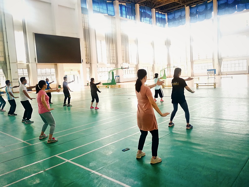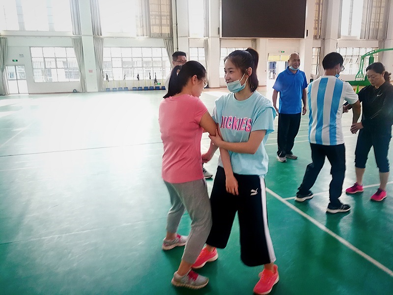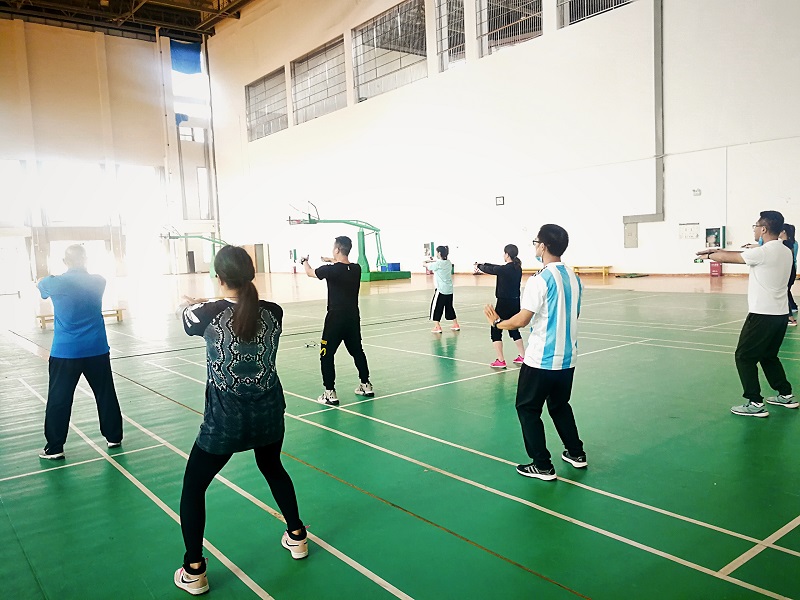 2020年5月19日,体育部全体老师在体育馆篮球场进行集体备课,备课内容为八法五步第一段,由传统保健教研室陈桂真老师担任主讲。陈老师首先介绍“八法五步”的来源和“八法”、“五步”的含义。太极八法五步是国家体育总局最近整理提练编写的一个新套路。八法指的是掤、捋、挤、按、采、挒、肘、靠,五步就是左顾、右盼、进、退和中定。然后,陈老师给大家完整演示了一遍“八法五步”的套路,动作行云流水,刚柔并济,老师们大饱眼福冠军的风采。接着,陈老师带领老师们学习八法五步第一段。第一段以原地的手法为主,即“八法”:棚、捋、挤、按、采、挒、肘、靠。